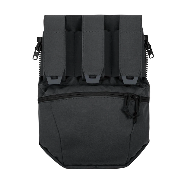 Panel posiada trzy górne kieszenie na rzep, przeznaczone na granaty hukowe lub magazynki. Pod nimi znajduje się pojemna kieszeń cargo z welurowym wnętrzem, idealna do przenoszenia delikatnego sprzętu, np. gogli lub optyki.