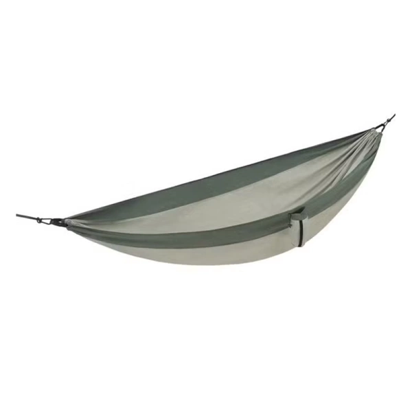 Jednoosobowy hamak turystyczny cechuje się dużą wytrzymałością – maksymalne obciążenie wynosi aż 180 kg. To idealne rozwiązanie dla miłośników minimalizmu i outdoorowych przygód. Wykonany z oddychającej i trwałej tkaniny poliestrowej, zapewnia komfortowy wypoczynek nawet podczas dłuższego użytkowania. Specjalna konstrukcja boków zapobiegają rolowaniu się materiału, co zwiększa wygodę podczas snu. Hamak wyposażono w dwie linki i dwa karabinki, które umożliwiają szybkie i stabilne zawieszenie, a także praktyczny worek transportowy ułatwiający przechowywanie. Dodatkowa kieszonka umieszczona z boku pozwala na schowanie drobnych przedmiotów, takich jak telefon czy latarka, co zwiększa funkcjonalność modelu.
