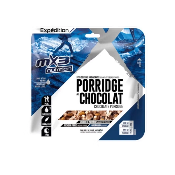 Owsianka czekoladowa (800) marki MX3 to energetyczne i smaczne śniadanie liofilizowane, które doskonale sprawdzi się na start dnia lub jako szybka przekąska podczas trekkingu czy podróży.