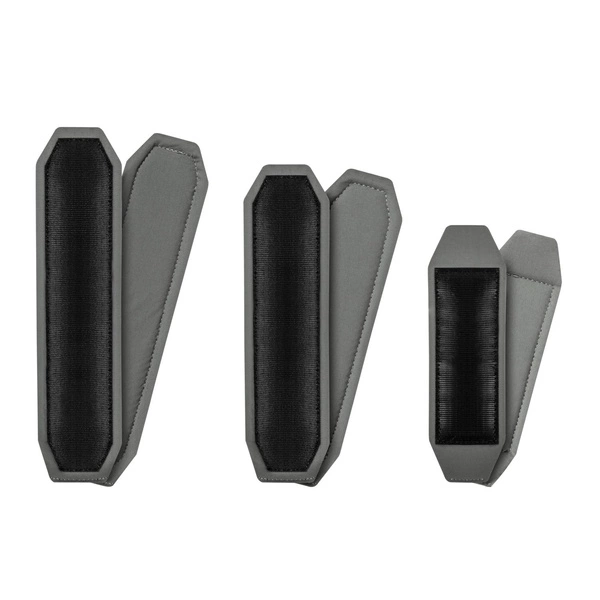 Zestaw składa się z 6 sztuk: dwóch do płyty przedniej, dwóch do płyty tylnej oraz dwóch na szelki, doczepianych do dedykowanych pasków welurowych od wewnętrznej strony plate carriera.