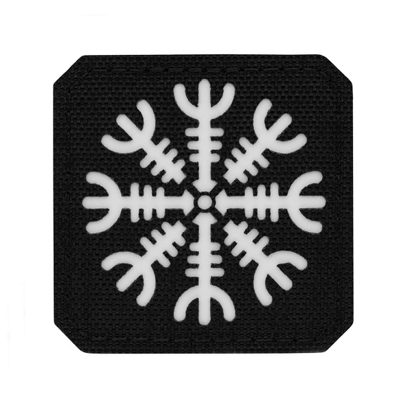 Naszywka Hełm Grozy firmy M-Tac przedstawia Aegishjalmur, islandzki znak magiczny wycinany laserowo, symbolizujący ochronę przed wrogiem i wywołujący strach u przeciwnika.