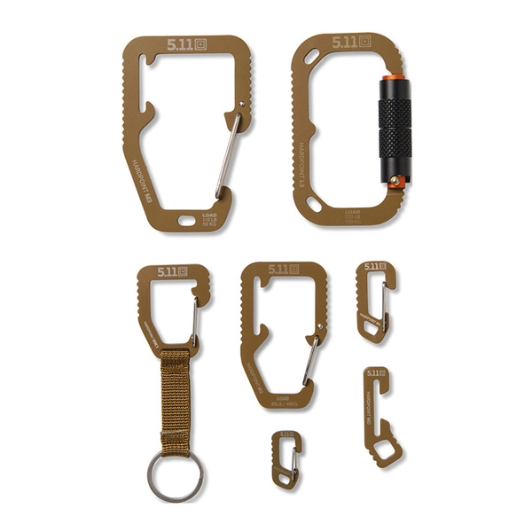 Wykonany z odpornej na zużycie i korozję stali nierdzewnej, gwarantuje trwałość nawet przy intensywnym, codziennym użytkowaniu. Dzięki modułowej konstrukcji elementy zestawu można łatwo przypiąć do systemu MOLLE, taśm, szlufek czy plecaków, co zapewnia maksymalną wszechstronność. Samozamykające się bramki i ząbkowane krawędzie pozwalają na sprawne, jednorzędowe użytkowanie i pewny chwyt, nawet w trudnych warunkach.