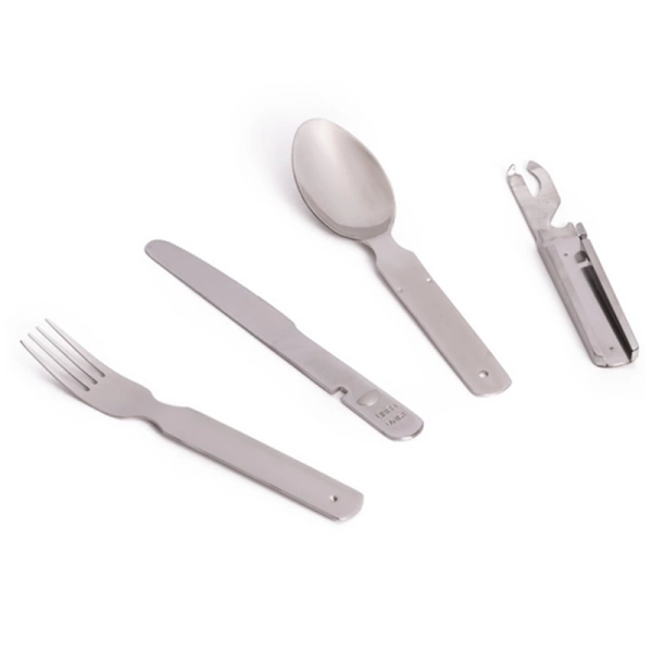 Czteroczęściowy niezbędnik Mil-Tec to praktyczny zestaw sztućców wzorowany na tym, który używany jest w niemieckiej armii.