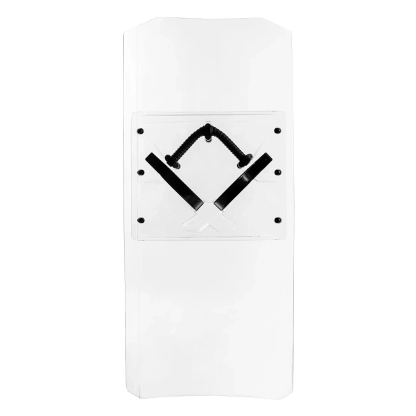 Podwójny chwyt z głębokim teksturowaniem umożliwia pewne i stabilne trzymanie tarczy oburącz, nawet w trudnych warunkach. W konstrukcji uwzględniono także praktyczny uchwyt na pałkę, co podnosi ergonomię i gotowość operacyjną. Tarcza ochronna ESP posiada ognioodporną budowę oraz wykazuje odporność na strzały z broni kalibru 12G (śrut 3 mm), przy czym producent nie ponosi odpowiedzialności za używanie produktu jako osłony balistycznej.