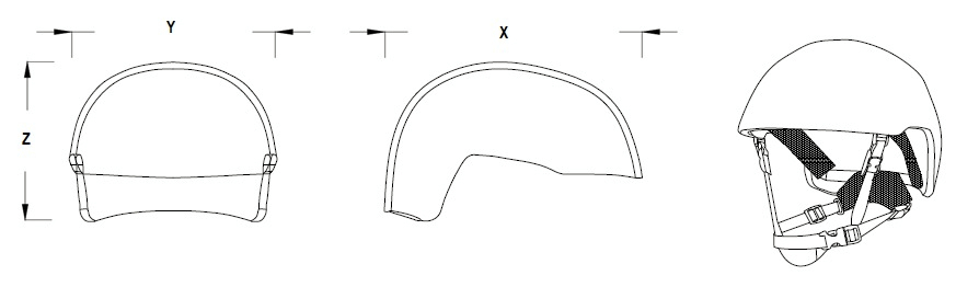 | Rozmiar | Obwód głowy | Waga hełmu | Waga skorupy | Długość wewn./zewn. | Szerokość wewn./zewn. | Wysokość wewn./zewn. |