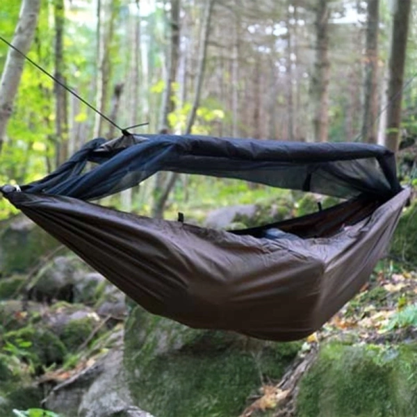 Hamak DD to odpowiedni wybór na wypadu bushcraftowe oraz survivalowe. Dzięki temu, że hamak jest wykonany z wodoodpornej tkaniny można go rozłożyć na ziemi i upiąć schronienie w stylu norki - bivy bez obaw o zawilgocenie spodu schronienia.