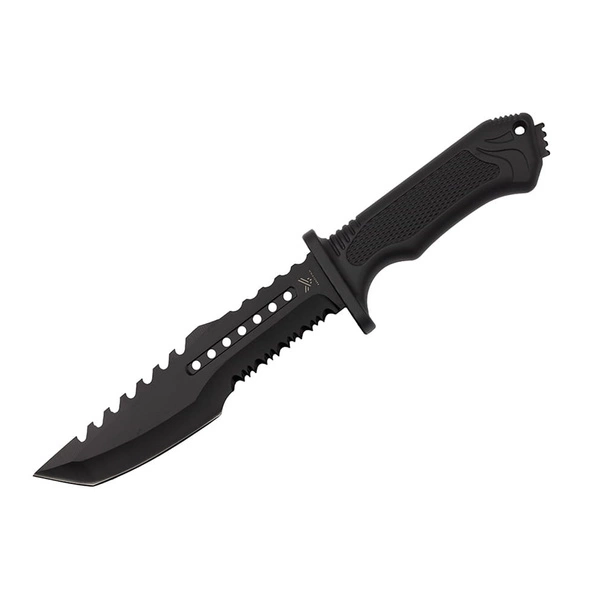 HASTAA 01-HS-251 to idealny nóż militarny od renomowanej firmy MAVERIG, zaprojektowany z myślą o najbardziej wymagających użytkownikach. Połączenie klasycznego, wojskowego charakteru z nowoczesnym wzornictwem sprawia, że model ten doskonale sprawdzi się zarówno w działaniach taktycznych, jak i w survivalu. Głownia została wykonana z wysokiej jakości stali nierdzewnej 420J2, pokrytej czarną powłoką chroniącą przed korozją oraz odbiciami światła. Profil tanto podkreśla bojowy potencjał noża, ale idealnie sprawdza się też podczas wymagających zadań terenowych. Gładkie i częściowo ząbkowane ostrze zapewnia wszechstronność w każdej sytuacji, a szeroki jelec skutecznie zapobiega przypadkowemu ześlizgnięciu dłoni na ostrze. Metalowa, karbowana końcówka rękojeści umożliwia szybkie zbicie szyby w sytuacji awaryjnej. Klasyczna, czarna kabura z otworami montażowymi pozwala na wygodne przypięcie noża do ekwipunku, a ukryte w rękojeści krzesiwo stanowi praktyczny dodatek zwiększający funkcjonalność całego zestawu.