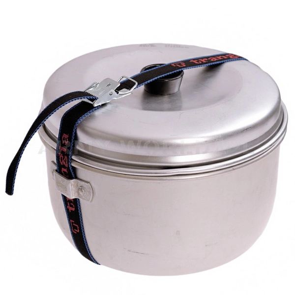 Zestaw zawiera: garnek (1,0 l), garnek (2,0 l), patelnie, uchwyt, pokrywę, pas mocujący, pokrowiec.